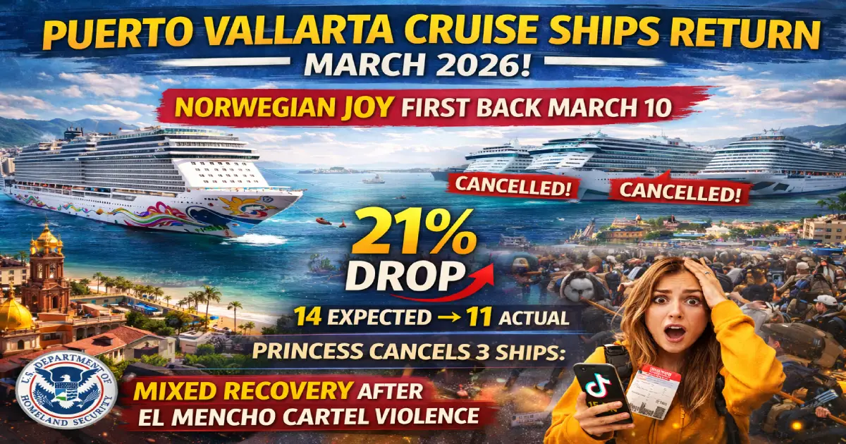 Breaking: Puerto Vallarta’s cruise tourism—Mexico’s 2nd-largest Pacific port—logs its first major ship return since the February 22, 2026 killing of cartel leader “El Mencho” as Norwegian Joy docks March 10 with ~4,800 passengers. BUT Princess Cruises cancels 3 scheduled ships (Island Princess March 10, Royal Princess March 11, Ruby Princess March 12), reducing March arrivals from 14 to 11 (21% drop). With cruise lines applying different risk thresholds, thousands of passengers face uncertainty at one of Mexico’s most beloved destinations. Here’s what every cruise traveler needs to know now.
